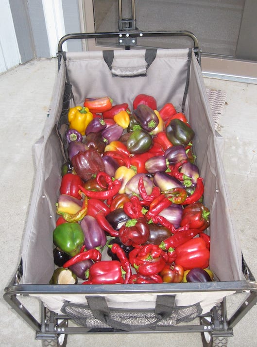 Still, gardeners can help out their neighbors by donating their excess backyard produce - vegetables and fruit - to a nearby food bank or food pantry. For example, right now in late October, here in USDA Zone 9 (and I know I am not alone in this bounty), there’s a lot of sweet peppers waiting to be harvested - definitely more than we can eat or process into relish. And what are those bright orange orbs staring at me from that tree outside my window? Oh yeah, Fuyu persimmons, also more than we can eat or dehydrate, that will be ready to harvest in a week or two. Definitely, these are the prime mid-Autumn candidates for transporting to the local food bank. Coming up in winter, it will be the cornucopia of citrus - oranges, mandarins, lemons - that will be heading to the food bank, along with fresh greens.