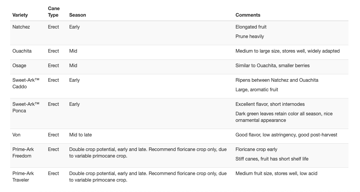 Top Cold-Hardy Blackberry Varieties (source: Double A Vineyards)
