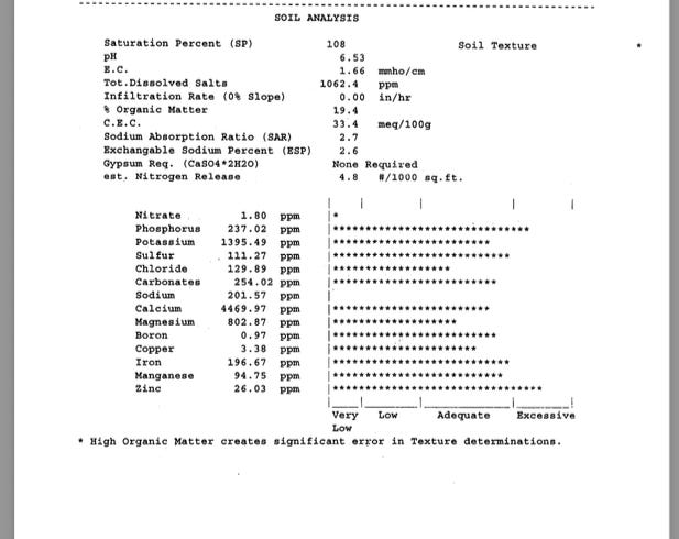 However, if you listen to today’s newsletter podcast, you’ll find out that understanding that detailed information can be a problem on its own. Here is a soil test from a commercial, Ag-based soil analysis company, that was submitted by a harried backyard gardener, who wants to know what it all means: